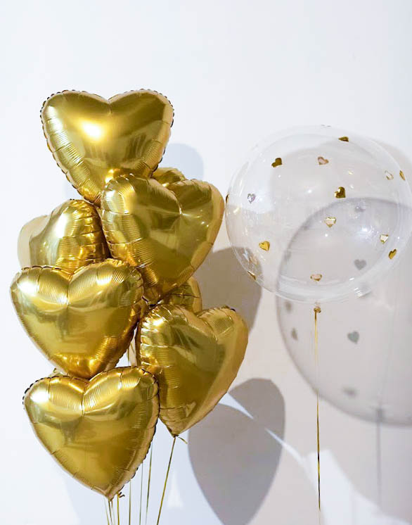 Композиция из гелиевых шаров Золотые сердца